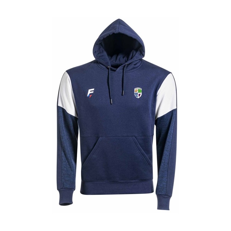 Sweat capuche doublé en coton interlock avec cordon de serrage. Poche type kangourou sur la face avant. Finition bout de manche et bas : RIB Bord cote "coton élasthanne". Empiècements chiné au niveau des bras.