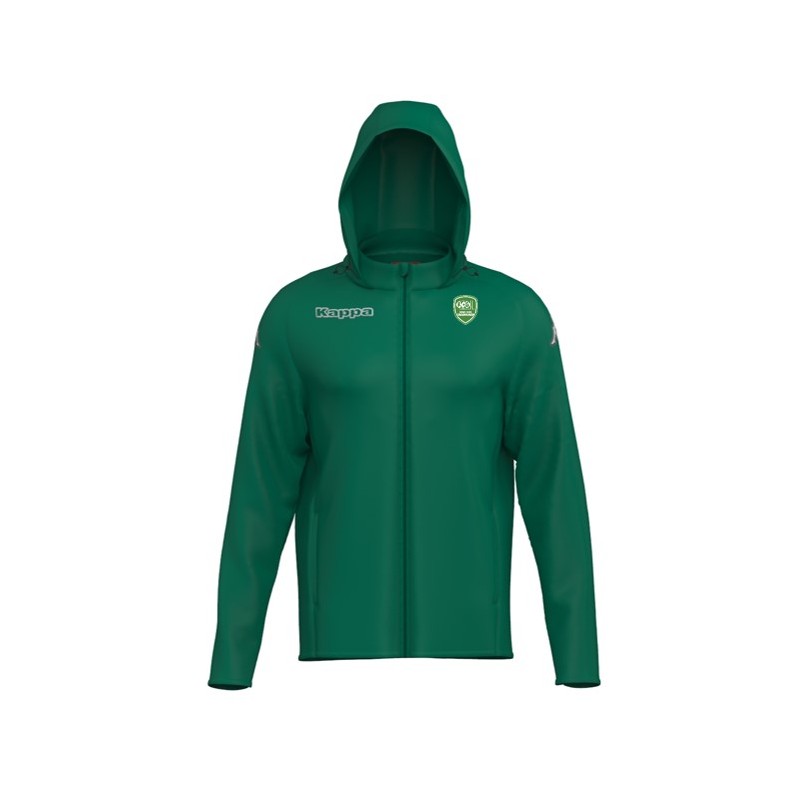 Manches longues, col montant, capuche réglable avec élastique. fermeture zippée, poches latérales.